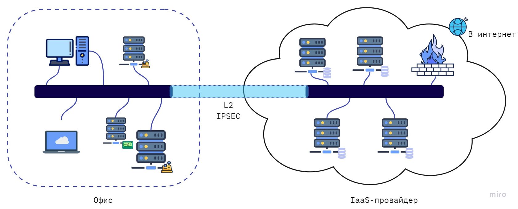 В облаке создается ИТ-инфраструктура полностью аналогичная офисной. Обеспечивается возможность создания требуемого количества виртуальных машин (серверов), нескольких сетевых сегментов, управления и интеграции с AD и средствами безопасности. Например, могут быть созданы виртуальные серверы со следующими функциями и ролями: сервер безопасности (Firewall, Site-2-site и Client Access VPN), терминальный сервер для организации удалённых рабочих столов сотрудников с возможностью установки приложений Microsoft Office, Skype и др., сервер баз данных, файловый сервер.